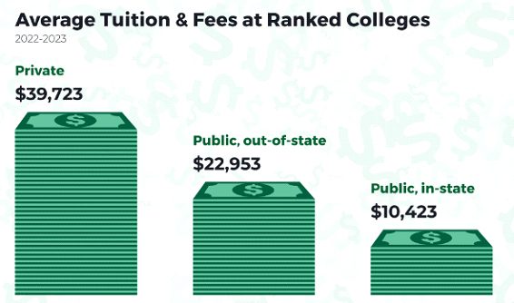 Student loan & Financial Aid are big topics for a student journey, since the early stage in the preparation of the process, students and their parents/relatives need to start the planning paths. The cost of education can be a major barrier, mainly for private schools. The average cost of tuition and fees to attend a ranked public college in state is about 74% less than the average price at a private college, at $10,423 for the 2022-2023 year compared with $39,723, respectively, U.S. News data shows. The average cost for out-of-state students at public colleges comes to $22,953 for the same year, according to USANews/payingforcollege, that cost has climbed 4% over last two years - that includes tuition and fees, on-campus room and board, books, supplies, and other expenses.
